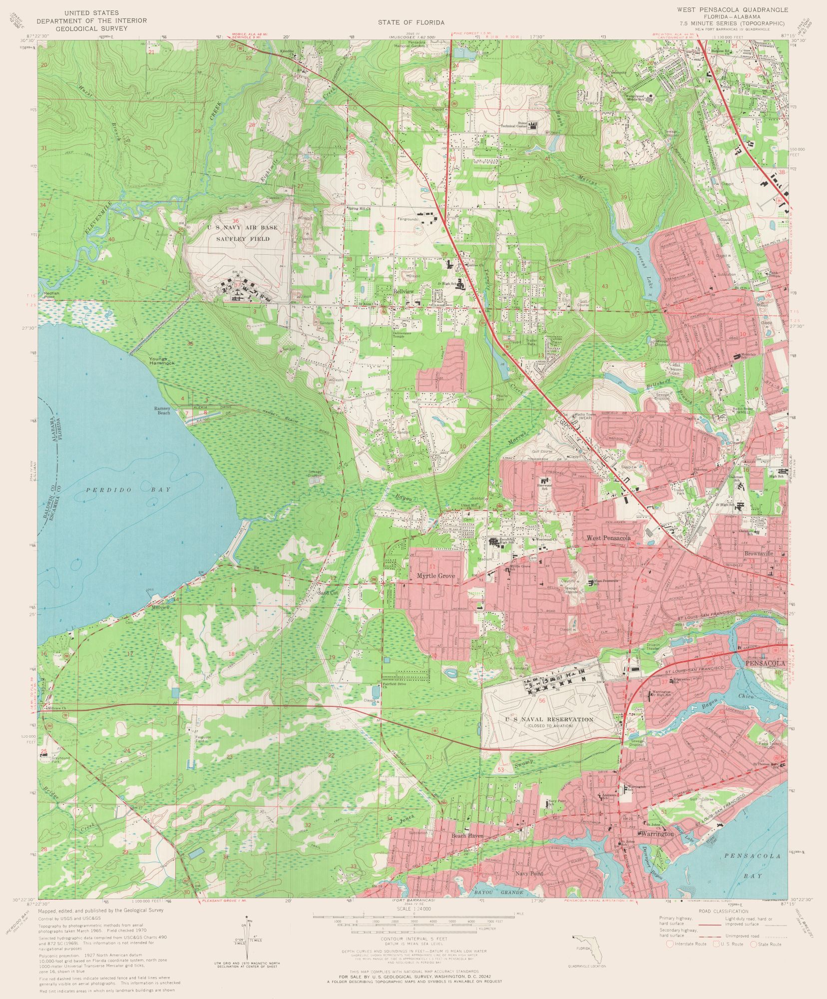 Topo Map West Pensacola Florida Quad Usgs 1970 23 00 X 27 78 Glossy Satin Paper Walmart Com